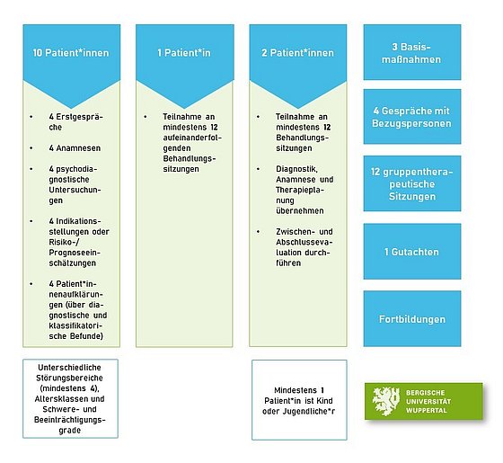 Zum Wintersemester 2023/2024 wurde der neue Masterstudiengang „Psychologie mit Schwerpunkt Klinische Psychologie und Psychotherapie (KPP)“ an der Bergischen Universität Wuppertal eingeführt. Im Masterstudiengang sind gemäß § 18 PsychThApprO berufspraktische Tätigkeiten vorgesehen. Die Berufspraktische Tätigkeit findet im Rahmen des Moduls PT.7 „Berufsqualifizierende Tätigkeit-III“ (BQT-III) statt, welches sich in einen ambulanten und einen (teil-)stationären Praktikumsteil untergliedert.