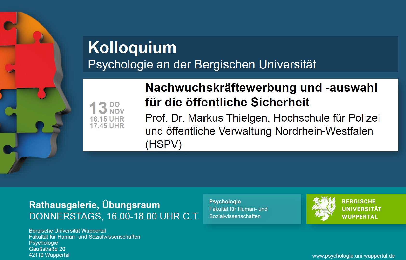Der zweite Termin des Institutskolloquiums im Wintersemester 2025/2026 findet am 13.11.25 von 16-18 Uhr (c.t.) statt. Herr Prof. Dr. Markus Thielgen (Hochschule für Polizei und öffentliche Verwaltung NRW) hält einen Vortrag mit dem Titel: "Nachwuchskräftewerbung und -auswahl für die öffentliche Sicherheit".